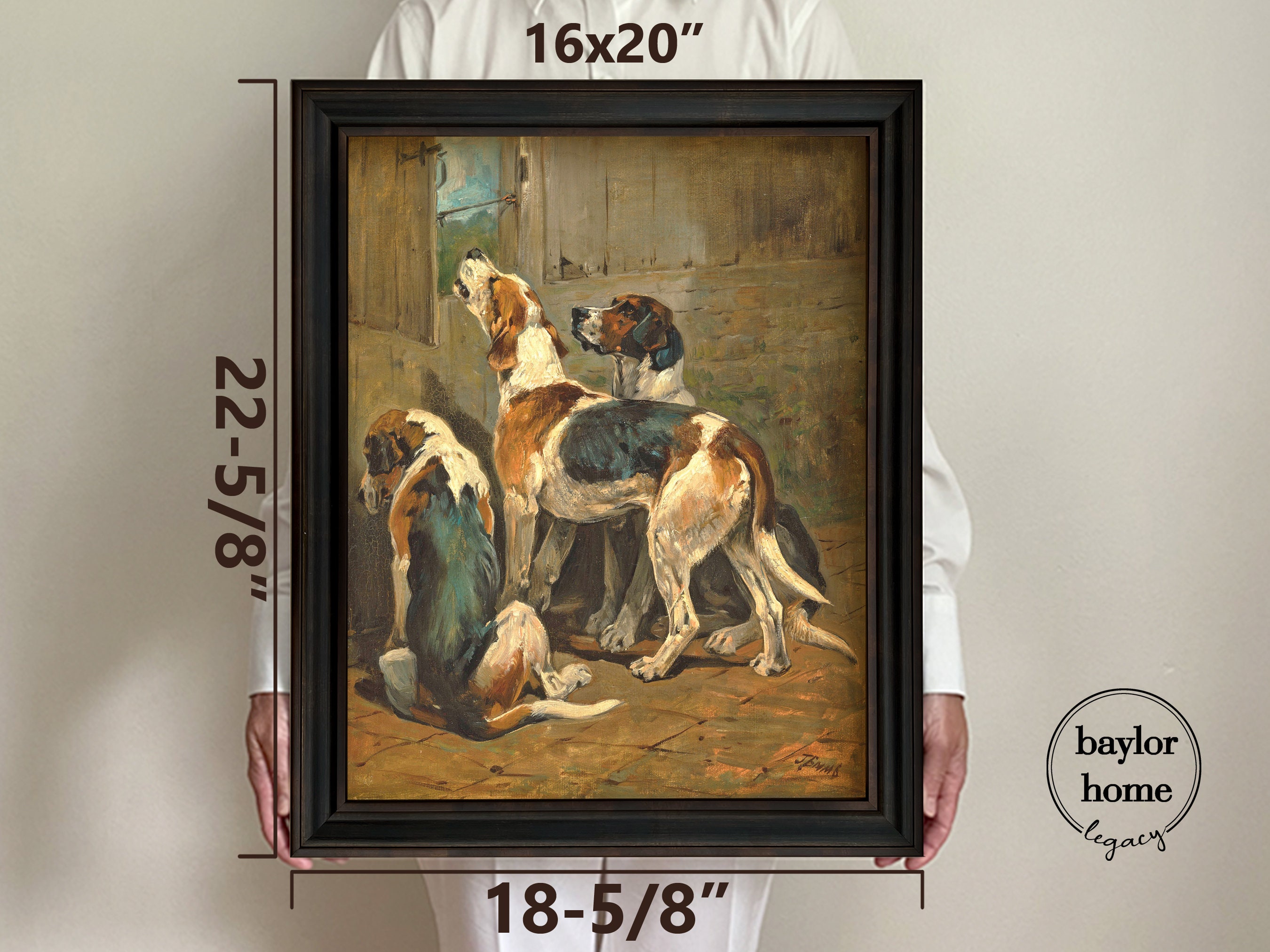 Framed Fox Hounds At Kennel Door Oil Painting Print On Etsy De
