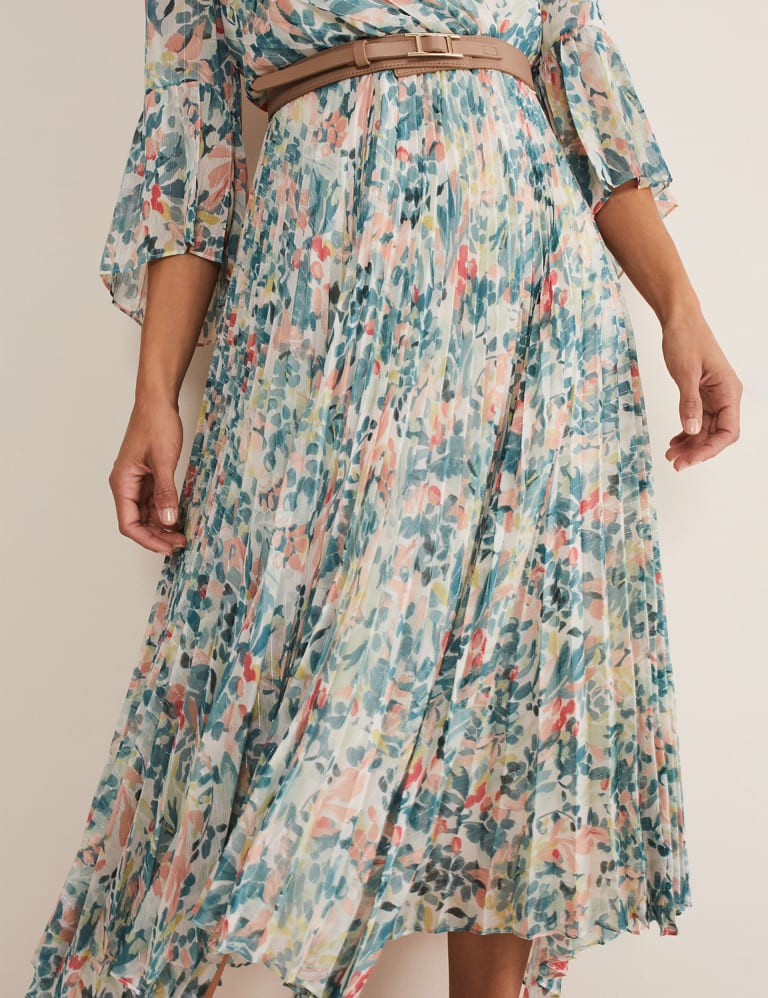 Floral V Neck Pleated Midi Tea Dress Phase Eight M S